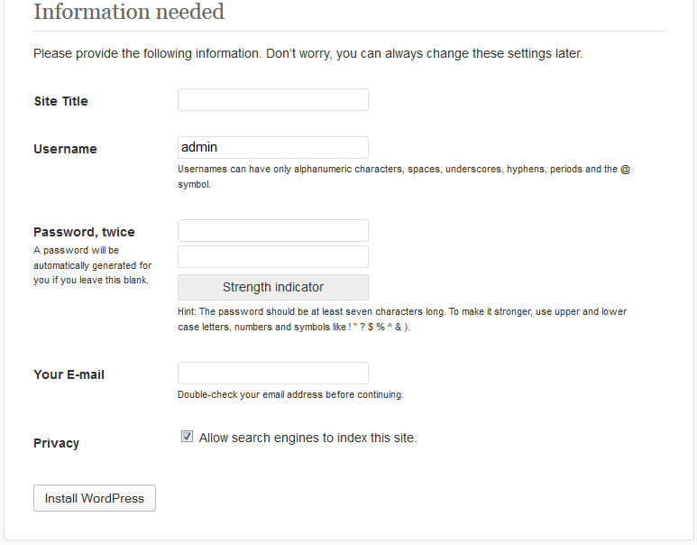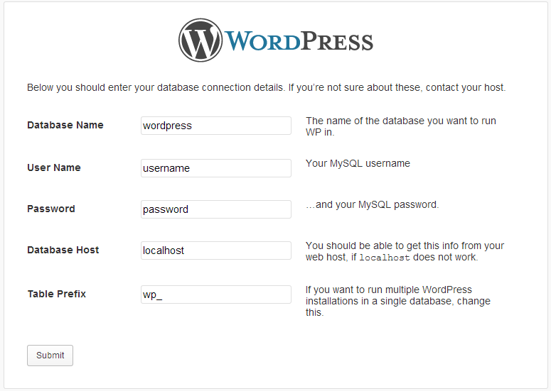 If you have installed WordPress manually before, I am sure that you are already familiar with the screenshot above. Basically, this is the second page of WordPress setup configuration.