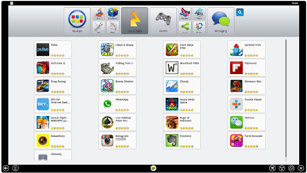 2. Once Bluestack is installed, the application will start up automatically. The next step is to install Instagram app. Click the white magnifying glass icon on the top right corner to search for application.